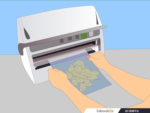把食物放在塑料袋里。大多数机器都要求使用特定品牌的袋子。广告
